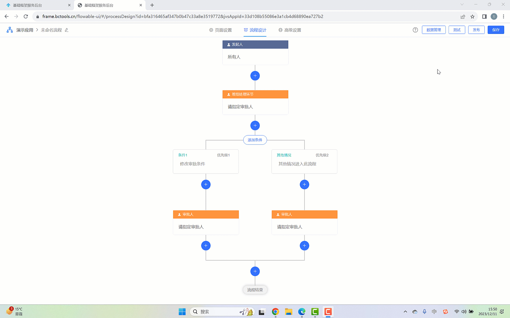 进入流程设计页面,本页面是流程配置的核心功能,如下图所示