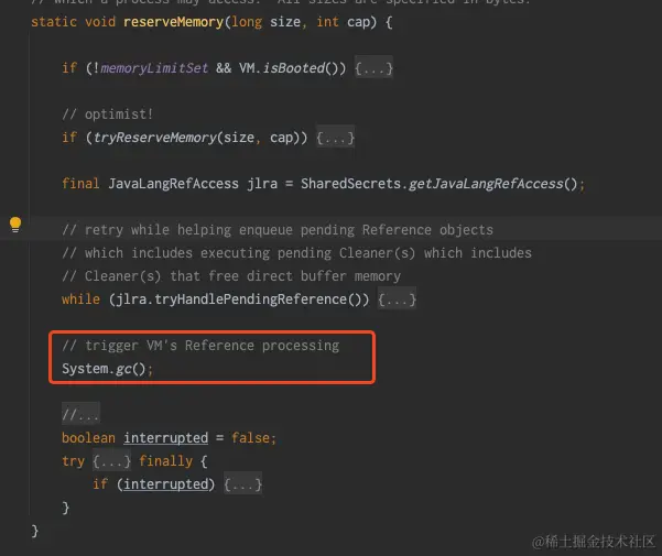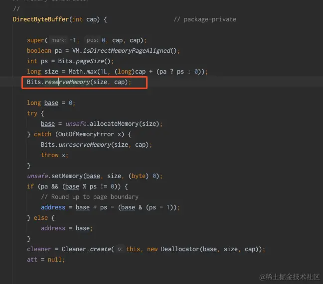 可以看到,同时DirectByteBuffer内部会调用 Bits.reserveMemory(size, cap);