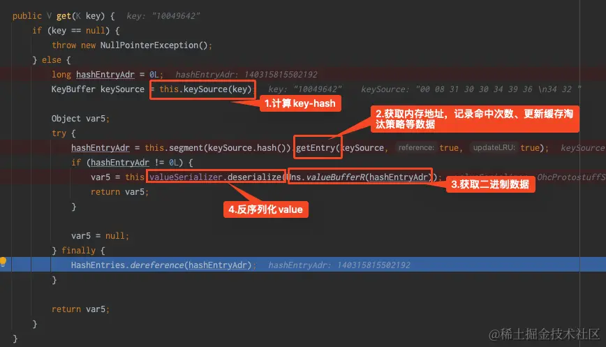 对于get操作,从指针所指向的堆外内存读取byte[],把byte[]反序列化成对象