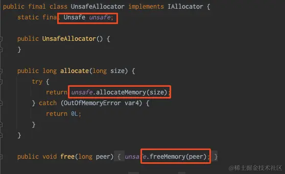 在put操作时,上面看到IAllocator有两个实现类,JNANativeAllocator和UnsafeAllocator两个实现类,他们有什么区别?为什么使用JNANativeAllocator?