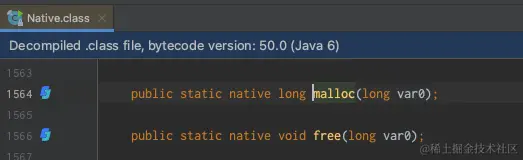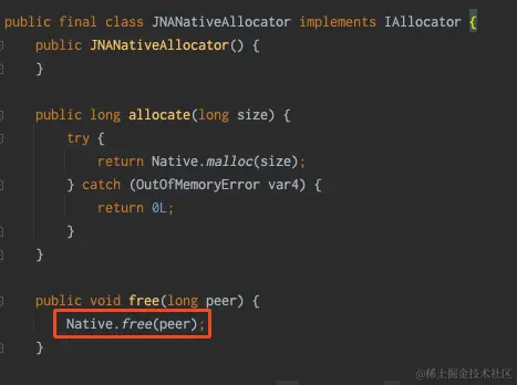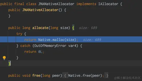 通过深入代码发现是调用的IAllocator接口的JNANativeAllocator实现类,最后调用的是com.sun.jna.Native#malloc实现