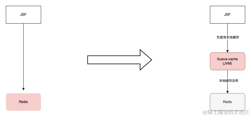 C端服务经过演进,核心接口先查询本地缓存,如果本地缓存没有命中,再查询Redis。本地缓存命中率99%,服务性能比较平稳。