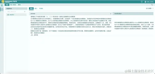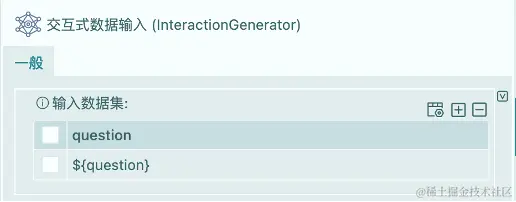 1. 交互式数据输入:该算子用于模拟用户的输入,如上图,我们设定用户输入的问题为“数据安全治理有哪些框架?特点是什么?”。由于真实情况下,用户提出的问题是变化的,所以我们可以在这里将问题写成变量的形式。HuggingFists支持的变量格式为”${varName}”。在驱动流程运行时,HuggingFists会将变量替换为运行时指定的具体值,从而可以将不同的问题带入流程。配置如下图: