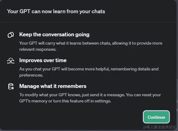 补一个细思恐极的事儿:“ChatGPT is getting memory”。ChatGPT beta 测试允许在主 GPT 中“记忆”或“遗忘”历史对话内容,比如 Code Interpreter 的语种偏好等等。如果做不到精确无误的记忆取回,这会是有点儿危险的功能;如果能做到,这就是终身助理的一大块拼图了。