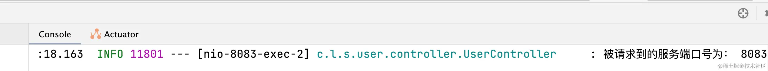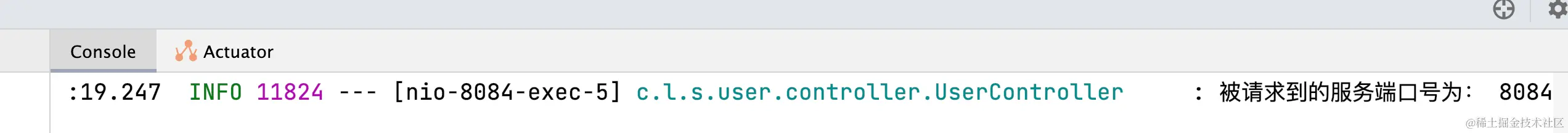 我们先来改造一下我们的用户接口,由于两个服务的端口号是不一样的,我们就在程序当中打印一下端口号。