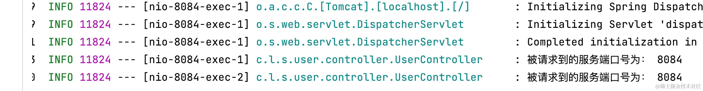 发现8084被调用了两次,8082被调用了一次。 看样子应该是随机的。
