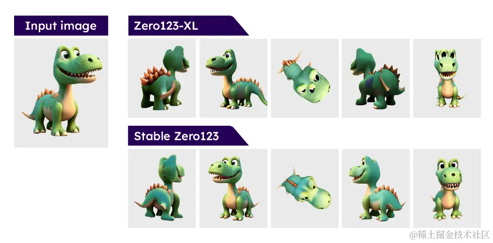 Stable Zero123的训练基于超过1000万个3D模型数据集Objaverse-XL,这个高质量、精准的数据集是模型高效训练的关键。Stable Zero123在单节点8块A100 80GBs GPU上进行训练,展现了其出色的计算效率。