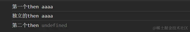 看一下输出,三个then方法均被成功执行,但是细心的你一定发现输出的顺序好像有点奇怪,并且出现了一个undefined。