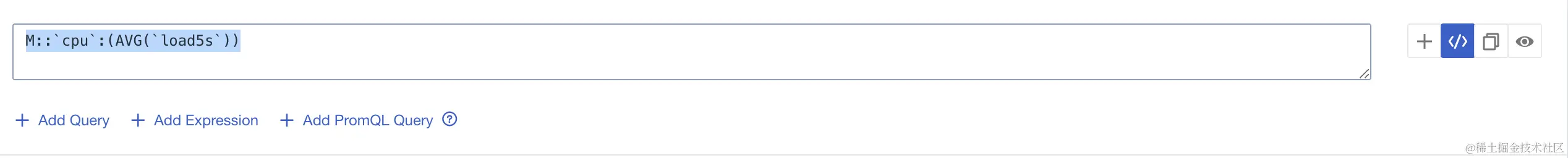 在选定我们需要查询的数据后,只需要在指标分析的指标选项右侧,点击「</>」按钮,即可获取查询这个指标所对应的DQL语句。对于不是很熟悉观测云DQL语法体系的同学或者初学者来说是非常友好的功能: