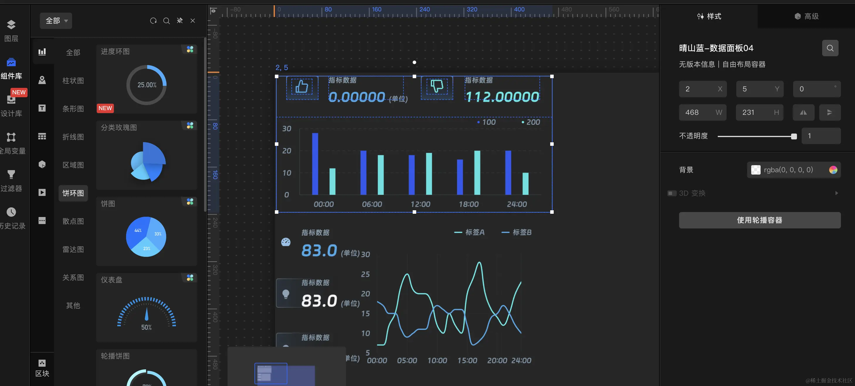 知道了入参格式和返回格式,就可以套用给其他DataV组件,根据自己的需求构建大屏