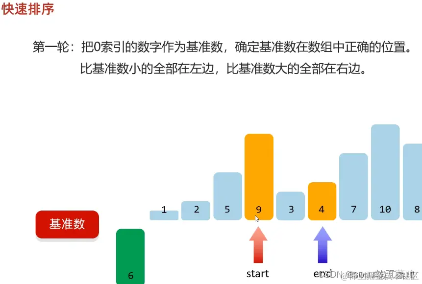 //就是拿着这个范围中的第一个数字,跟start指向的元素进行交换
