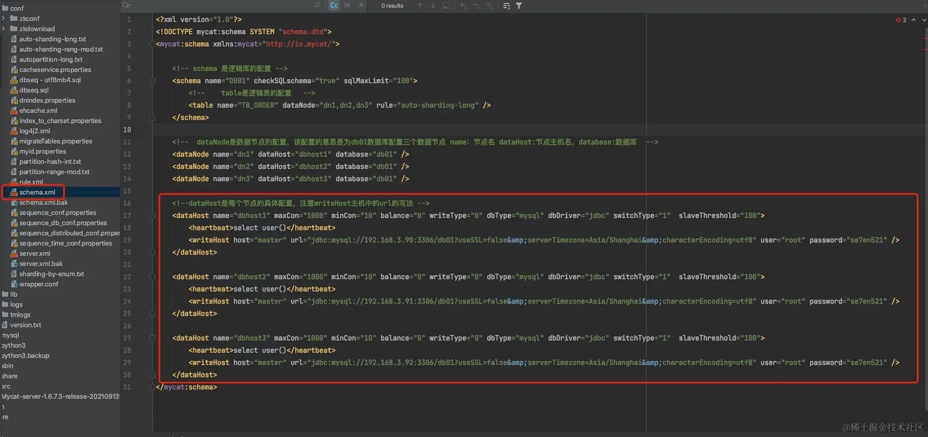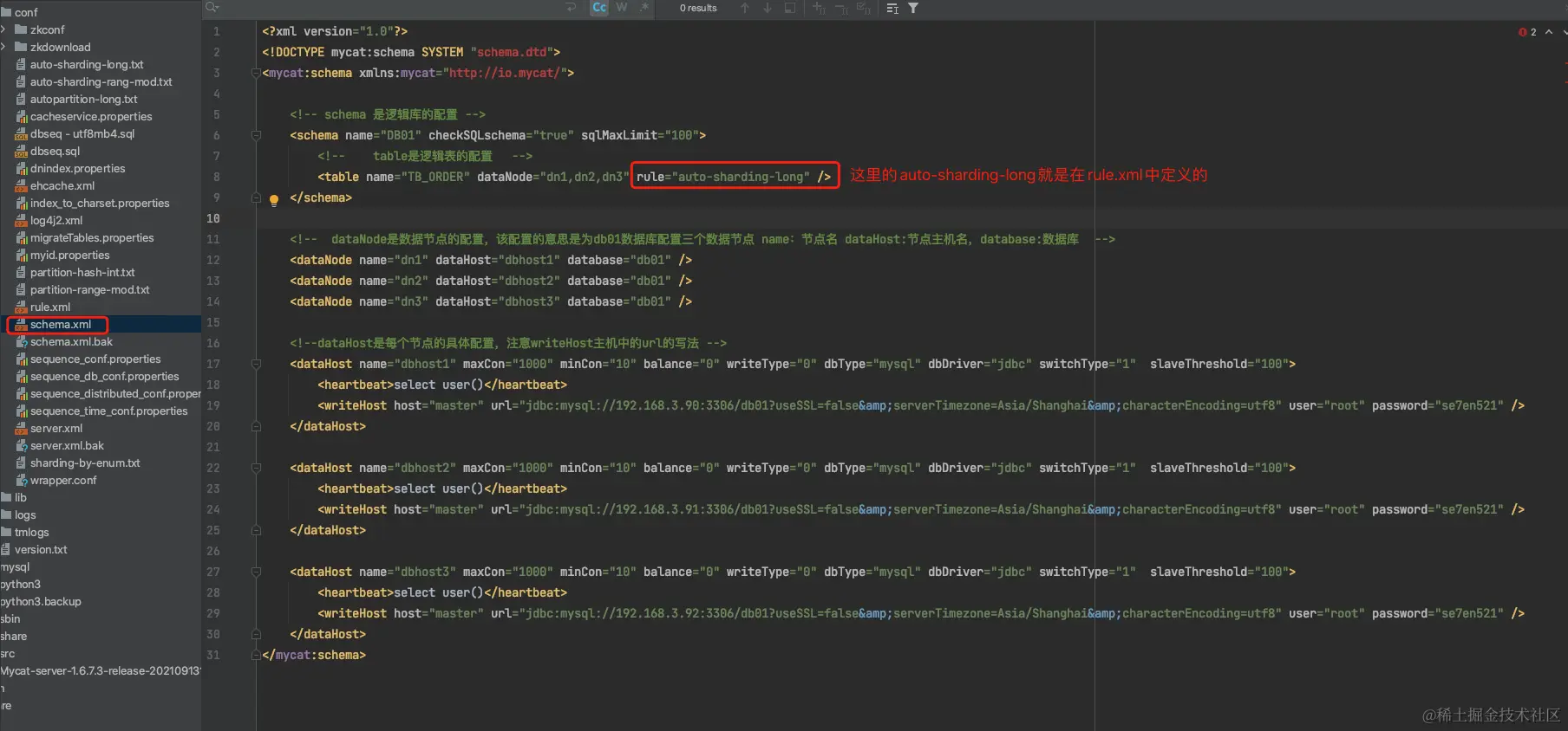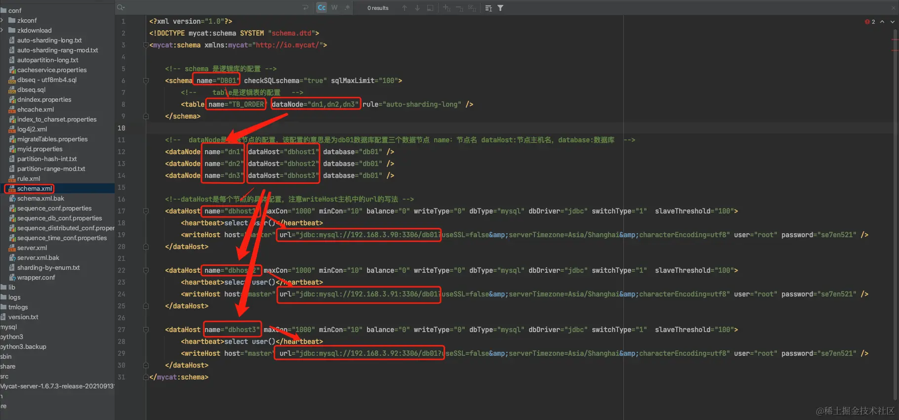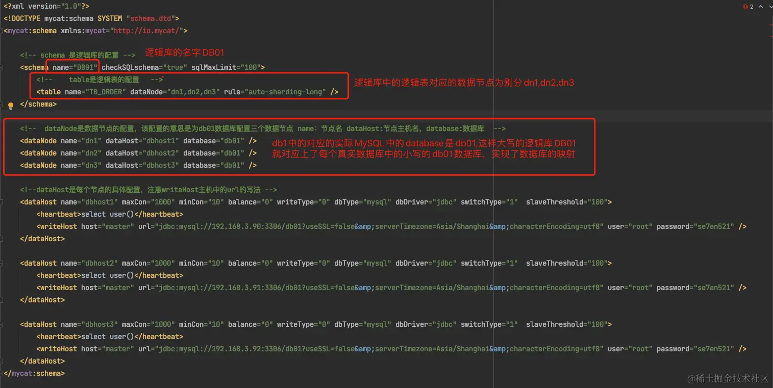 dataHost:数据库实例主机名称,引用自dataHost标签中name属性