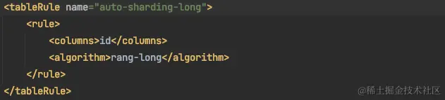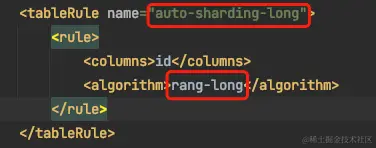 例如:auto-sharding-long 分表规则的,依据是rang-long这个算法。