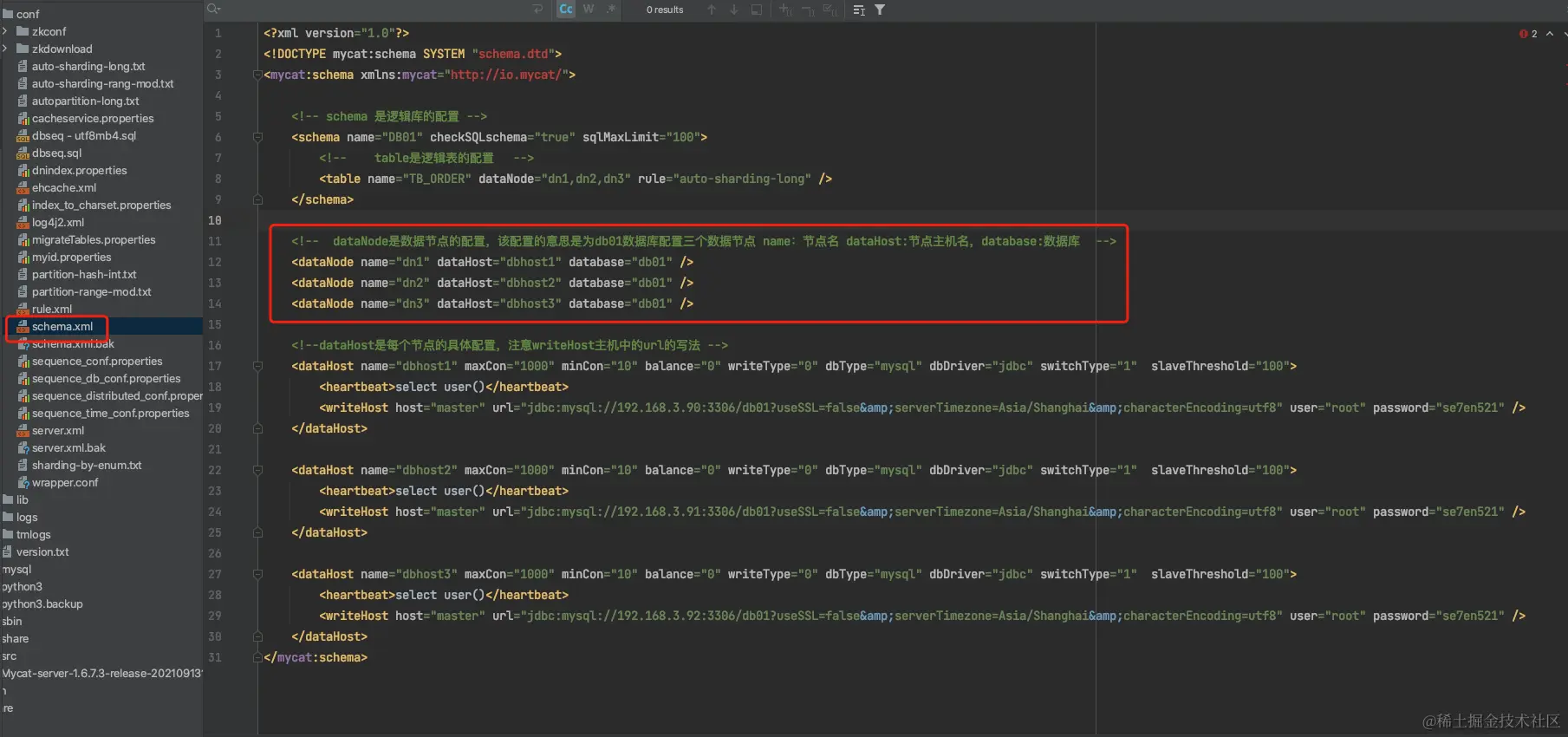 该标签在Mycat逻辑库中作为底层标签,直接定义了具体的数据库实例、读写分离,心跳语句。
