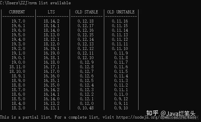 1.nvm list available // 显示可以安装的所有node.js的版本