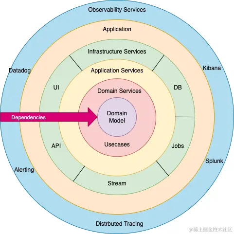 - 依赖性:洋葱架构中的圆圈代表不同的责任层,进入越深越接近领域和业务规则,外圈代表机制,内圈代表核心领域逻辑,外层依赖于内层,而内层对外圈一无所知
