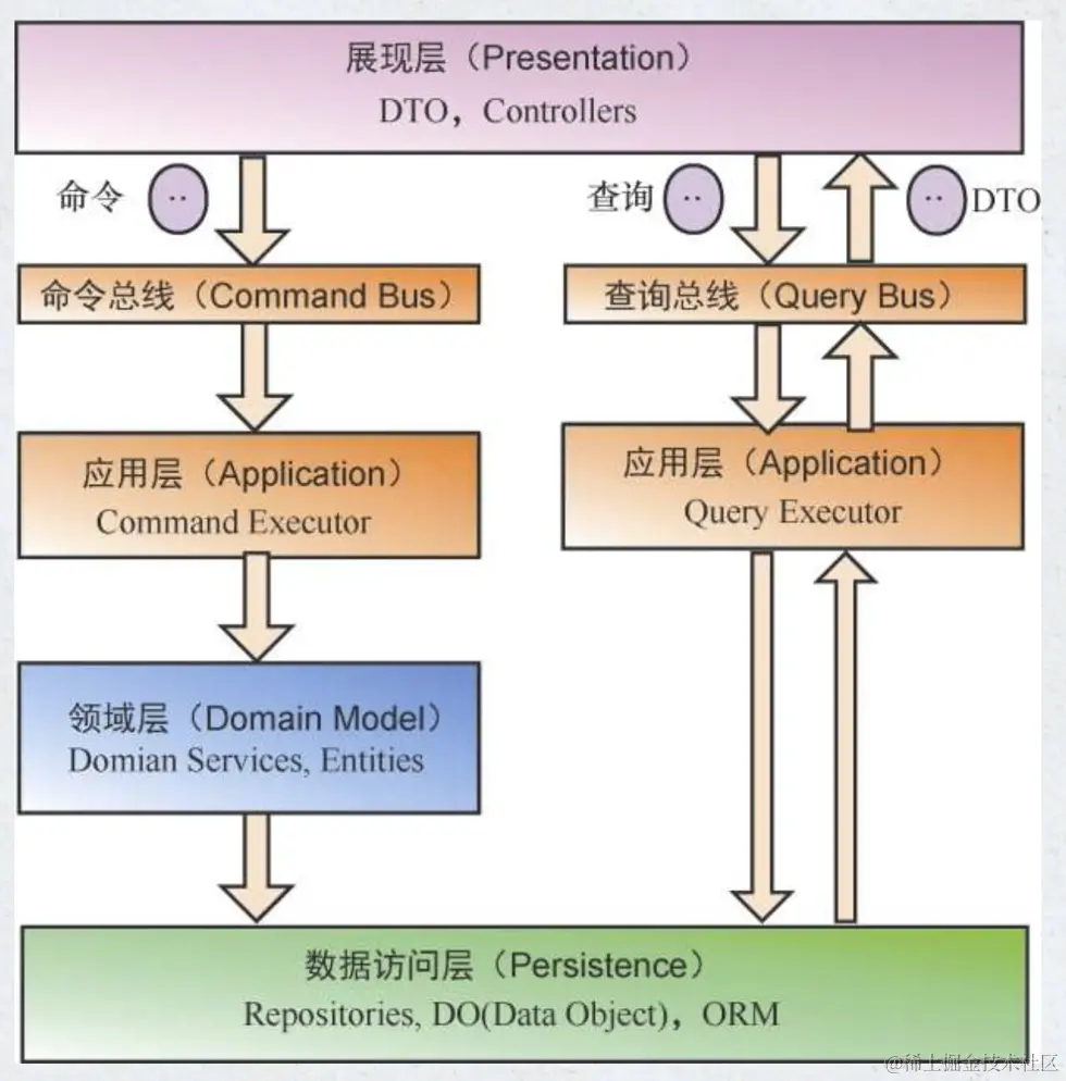 命令查询职责分离模式(Command Query Responsibility Segregation,CQRS)是一种软件架构模式,它通过从业务上分离修改(Command:增、删、改,会对系统状态进行修改)和查询(Query:查,不会对系统状态进行修改)的行为,使逻辑清晰,提高系统的可维护性和灵活性。
