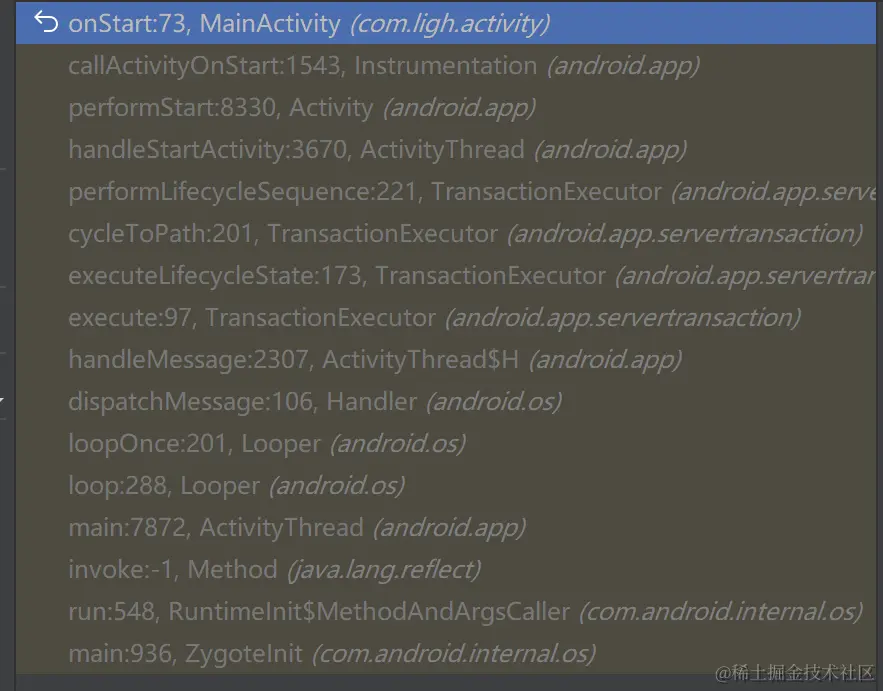 原来如此,还记得path怎么计算的么,显然是这里分发了start事件。我们再次打印下onStart的调用栈