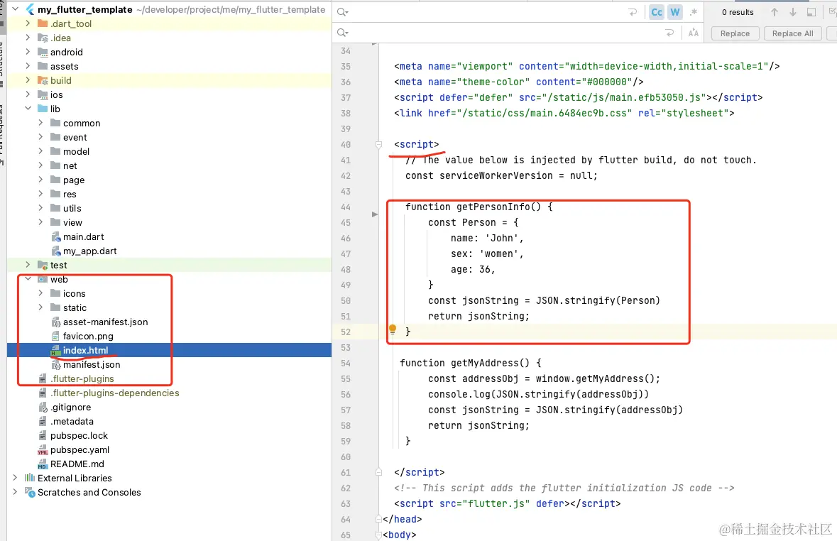 2. 将 React 打包,把关键信息复制到 Flutter Web 项目中