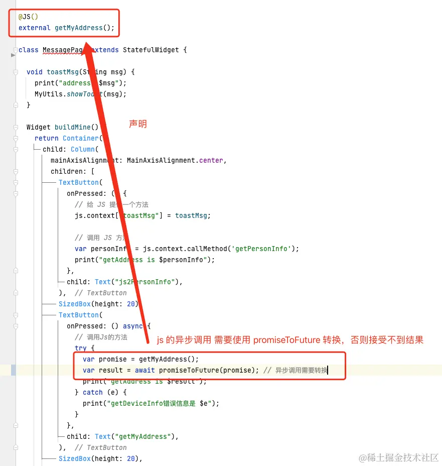 2.1 先在 Flutter 提供一个方法(详见注释):