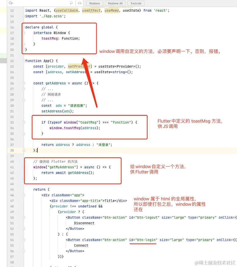 1. 在 React 中编写方法供 Flutter调用