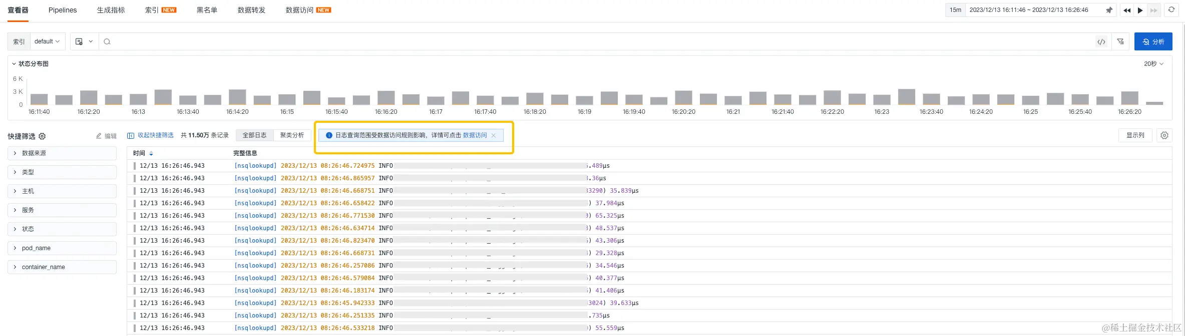 - 日志查看器新增数据访问规则限制提示。