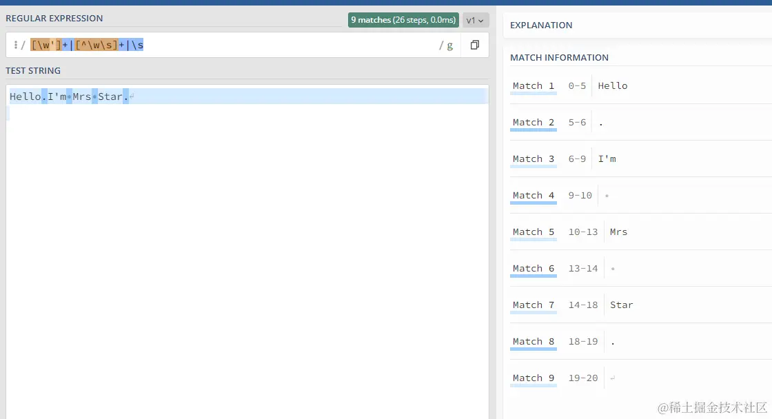 最终的正则式:/[\w']+|[^\w\s]+|\s/g