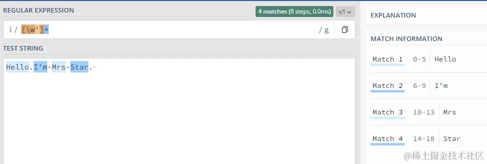 上面的结果中 Start. 单词和标点匹配到了一起,原句子他们中间没有空格。
