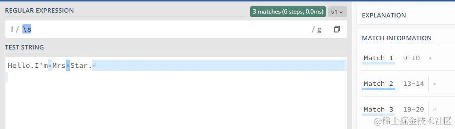 \s:匹配一个空白字符。