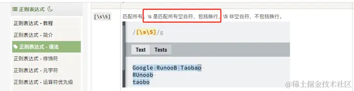 匹配空白字符,包括空格、制表符、换页符等等(记忆:space的意思)