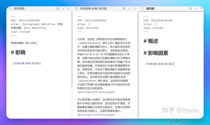 - 图谱显示了笔记之间存在关联,但是图谱却没有显示笔记之间如何关联以及为何关联。