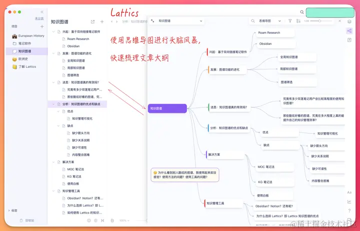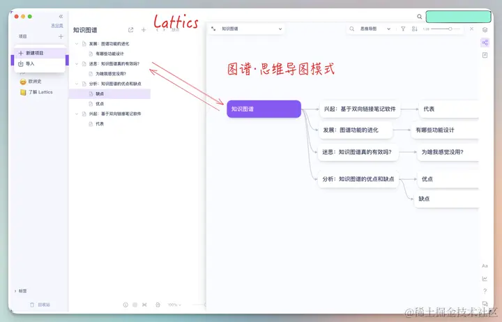 作为对比,从实际的工作和学习场景来看,Lattics 的图谱对于多数普通用户,更加容易上手,更好用一些。