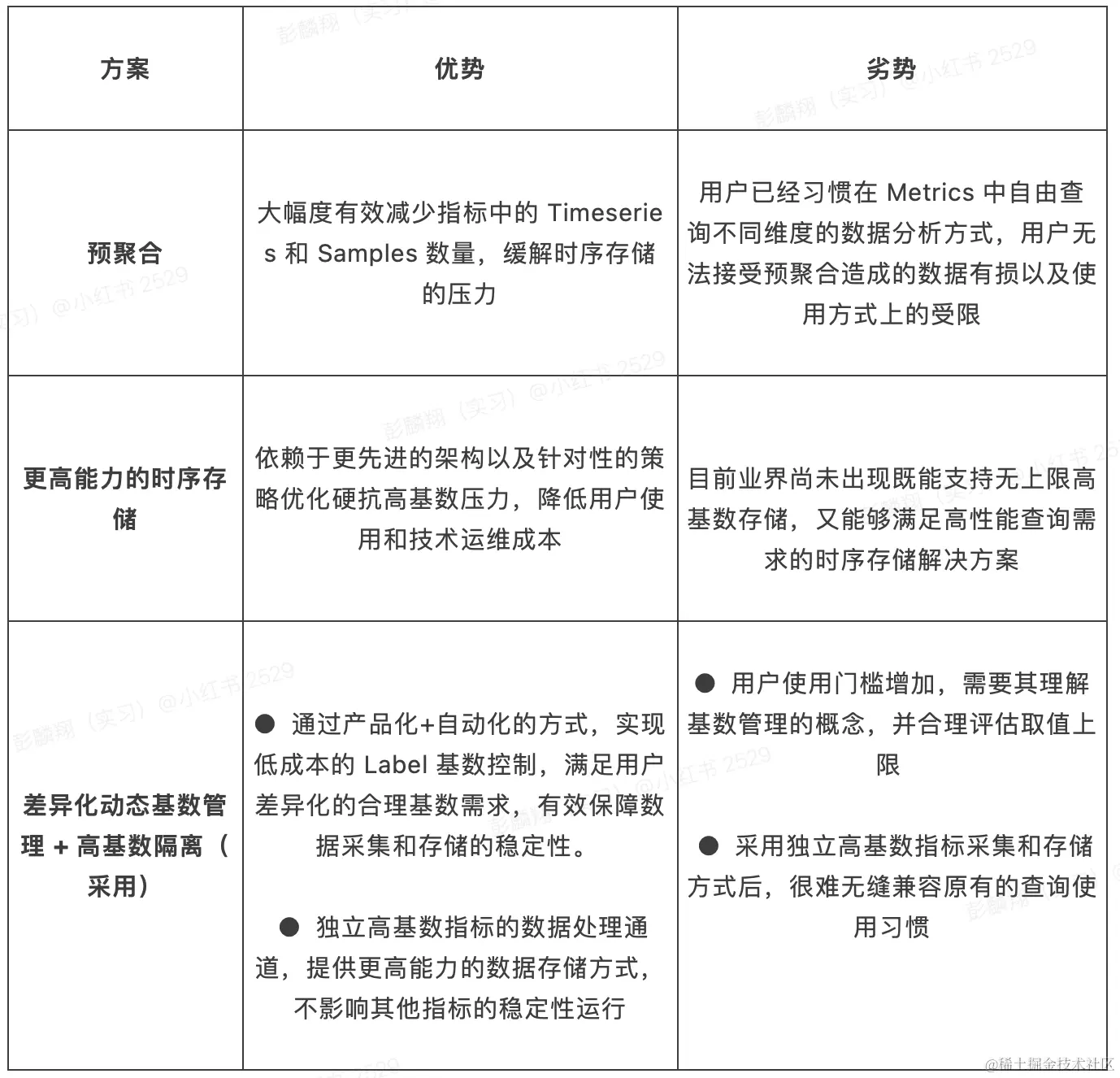 **高基数问题没有一个完美的解决方案,需要在性能、稳定性和成本之间进行平衡。**不同用户有差异化 Label 基数需求,例如基础组件、复杂业务场景的 Label 基数需求更高,不应该采取一刀切策略。