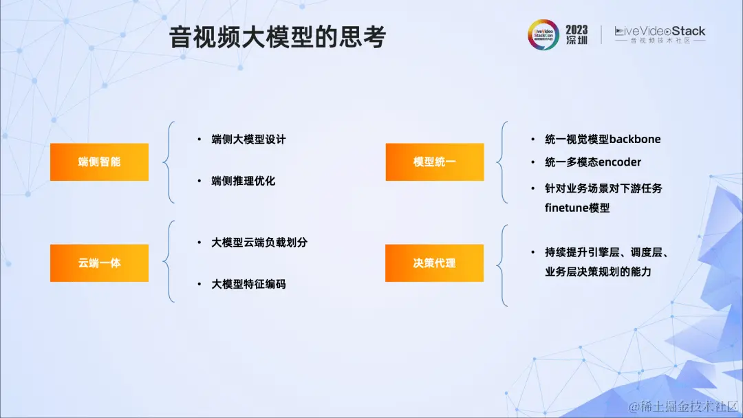 关于音视频大模型的思考,这里介绍四个方面: