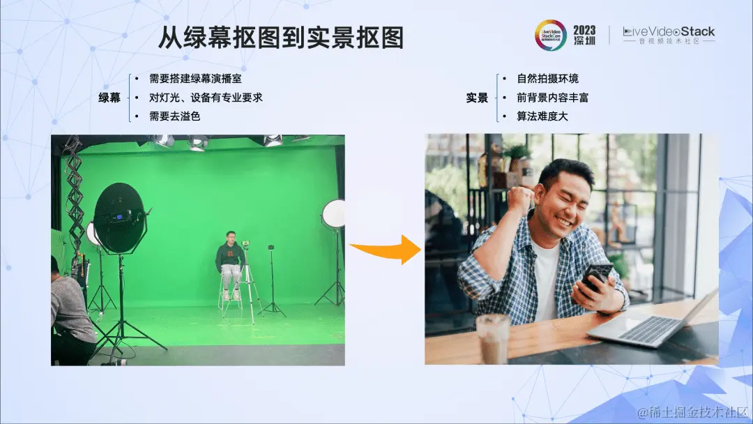 实景抠图是一项非常重要的底层技术,它的应用面非常广,比如我们熟知的数字人制作、虚拟演播厅、影视特效、视频剪辑、视频会议等都会用到它。