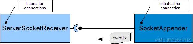 配置为扮演客户端角色的接收器将发起与远程 appender 的连接。远程 appender 必须是服务器类型,如 ServerSocketAppender。