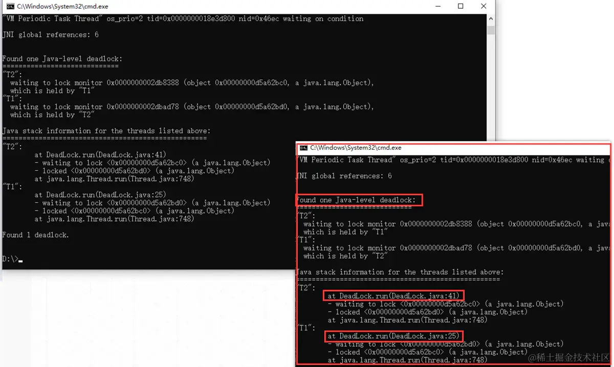 到目前为止,咱们已经初步获得了 “罪魁祸首” 的编号,而后可以再通过前面分析过的jstack工具查看线程的堆栈信息,并通过刚刚拿到的16进制线程 ID 在其中搜索: