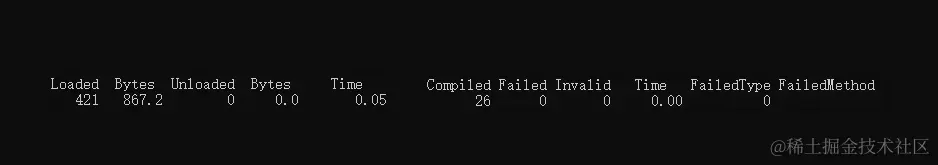 -class:输出类加载ClassLoad相关的信息。-compiler:显示与 JIT 即时编译相关的信息。-gc:显示与 GC 相关的信息。-gccapacity:显示每个分代空间的容量以及使用情况。-gcmetacapacity:输出元数据空间相关的信息。-gcnew:显示新生代空间相关的信息。-gcnewcapacity:显示新生代空间的容量大小以及使用情况。-gcold:输出年老代空间的信息。-gcoldcapacity:输出年老代空间的容量大小以及使用情况。-gcutil:显示垃圾回收信息。-gccause:和-gcutil功能相同,但是会额外输出最后一次或本次 GC 的诱因。-printcompilation:输出 JIT 即时编译的方法信息。