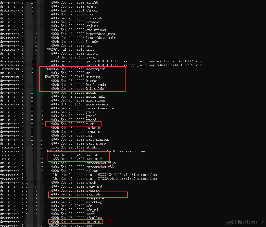 发现基本已经在跑着几个挖矿的病毒了。这里不确定能不能把后门排查完,只能和客户沟通说先排查一遍看看。(因为挖矿木马一般都会有后门,在清理挖矿程序后,后门会自动检查挖矿程序是否运行,如果不运行的话会重新下载一个挖矿程序然后再次运行。所以在完全清除挖矿程序后一段时间内,cpu占用率不飙升就可以说明清理成功。反之则说明挖矿病毒并未清理成功。)