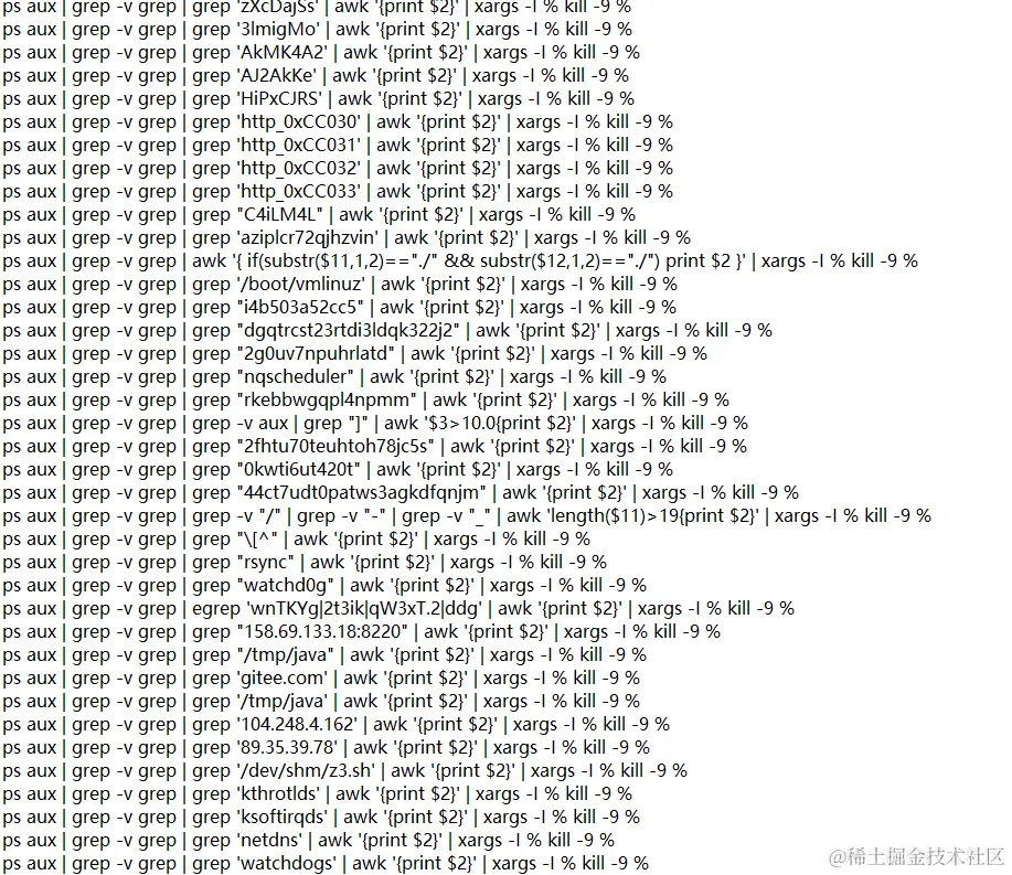 这里抽取其中的一个sh脚本讲一下挖矿病毒逻辑,因为脚本较大,所以这里是抽取部分代码过一遍逻辑,实际上常见的挖矿病毒脚本基本都差不多是一个逻辑,所以这里抽取了一个。
