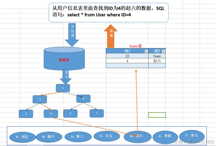 索引就好比书本的目录,提高数据库表数据访问速度的数据库对象。当我们的请求打过来之后,如果有目录,就会快速的定位到章节,再从章节里找到数据。如果没有目录,如大海捞针一般,难度可见一斑。这就是我们经常碰到的罪魁祸首,全表扫描。