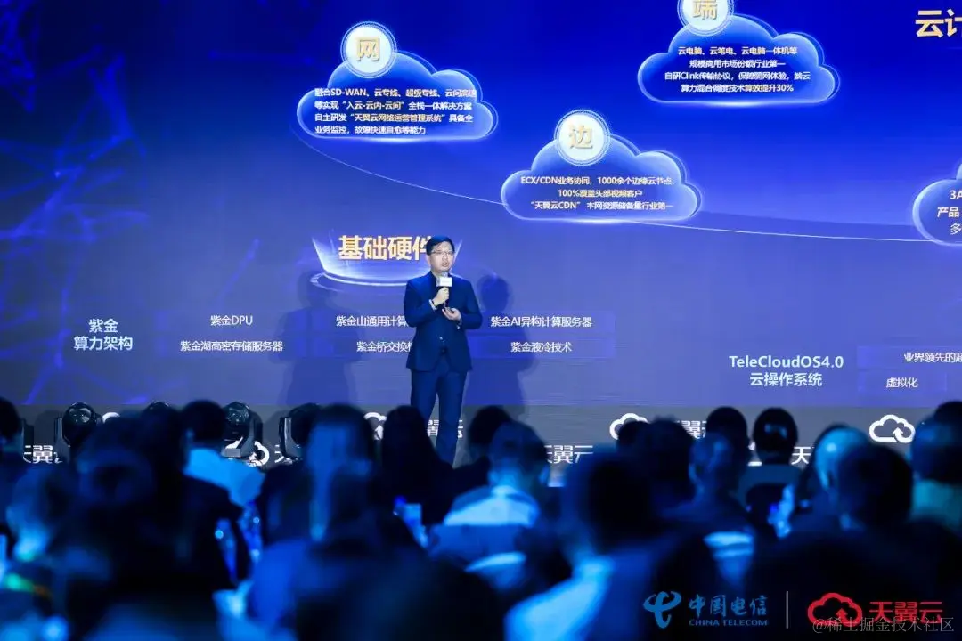 会上,天翼云科技有限公司云网产品事业部总经理杨鑫,围绕天翼云自主可控的国云底座以及面向AI+HPC构建的天翼云智算超算能力产品与技术展开分享。天翼云以自研云操作系统为核心,从底层基础软硬件技术,到上层高阶云能力,形成了技术领先、自主可控的“云网边端数智安”全栈云技术体系。通过基础设施、算力平台、算力调度和生态服务全面升级,为用户提供 IaaS+PaaS+MaaS+SaaS 一体化服务,赋能千行百业数字化转型,服务数字经济高质量发展。
