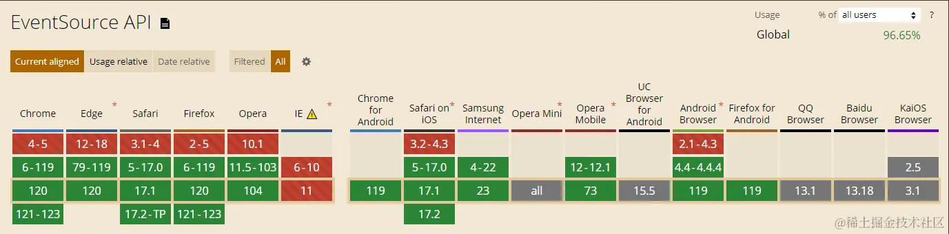 在客户端则需要使用内置的EventSource对象来进行操作。