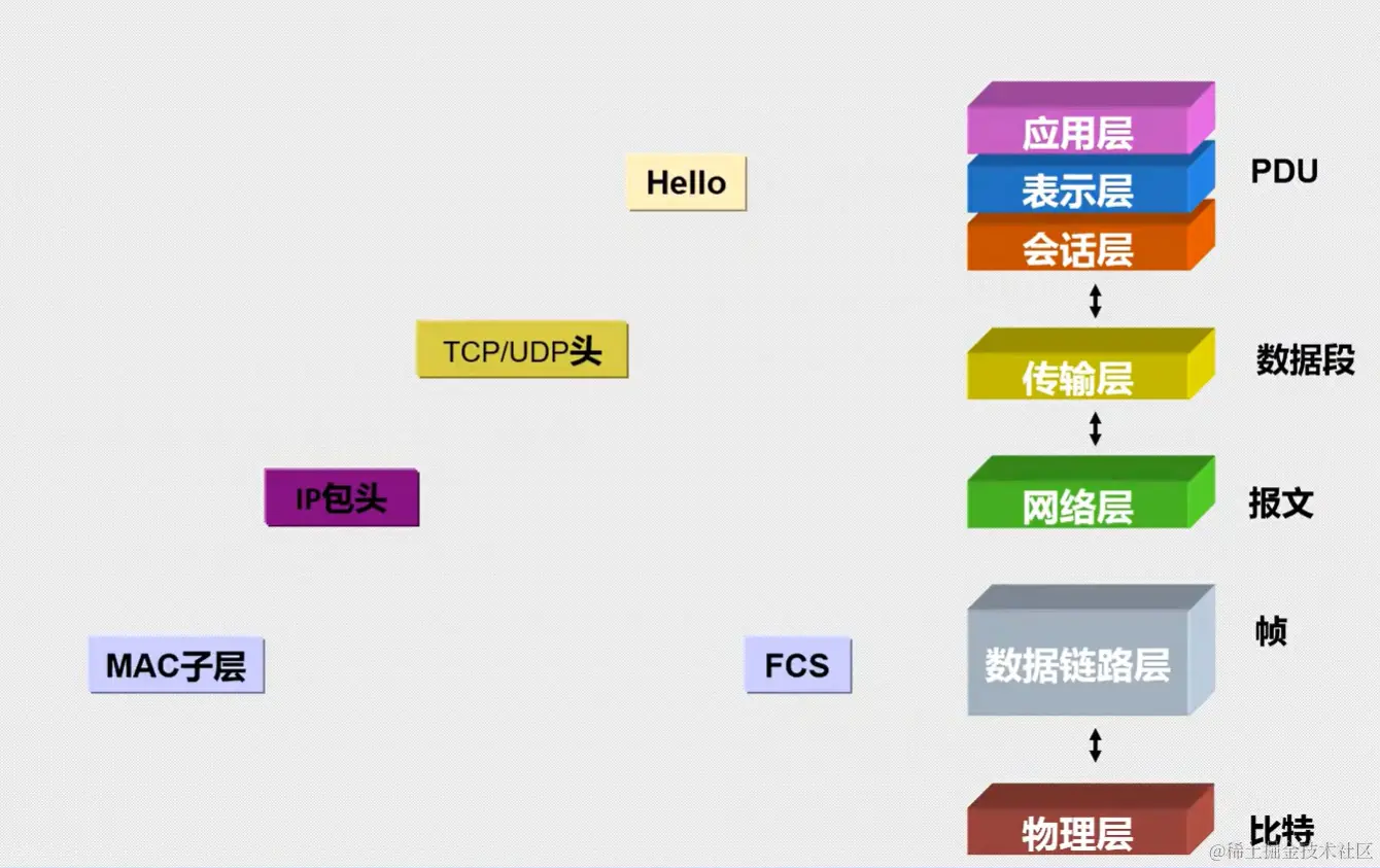 - 传输层:报文段(TCP)、用户数据报(UDP)