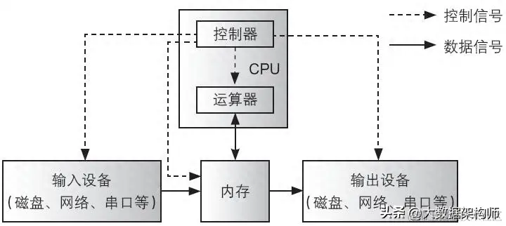 图2-6所示的冯·诺依曼结构是最常见的计算机系统结构,在冯·诺依曼结构的计算机系统中,CPU密集型任务主要发生在CPU和内存之间。所以,针对CPU密集型任务的优化,主要是提高CPU和内存的使用效率。