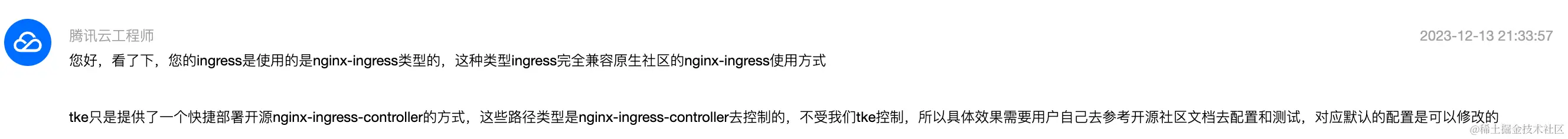 腾讯云的nginx ingress类型是基于原生的Nginx ingress controller实现的。(别问我是怎么知道的)