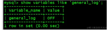 mysql> show variables like 'general_log';