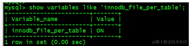 mysql> show variables like 'innodb_file_per_table';