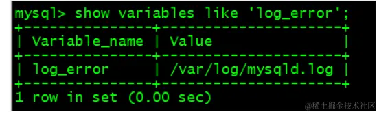 可以通过 show variables like 'log_error';