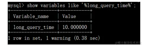 mysql> show variables like '%long_query_time%';